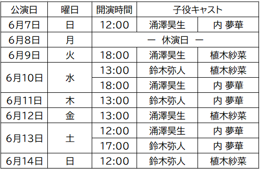 ※6月8日(月)は休演日